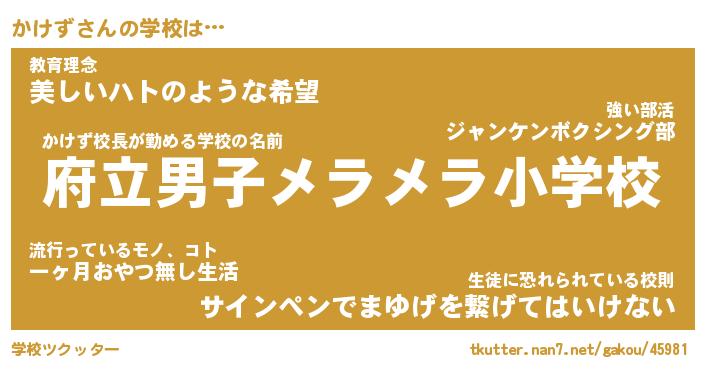 | ヒーロー風カッコイイあだ名 | 『スーパーカケズ』『ウルトラかけずマン』 |
