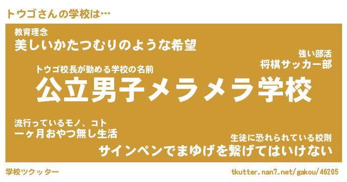 | 男性向けラノベタイトル風あだ名 | 『トウゴの憂鬱』 |