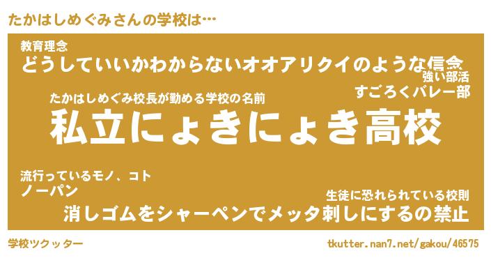 | 恥ずかしいあだ名 | 『プリティーたかはしめぐみ』『たかちん』 |