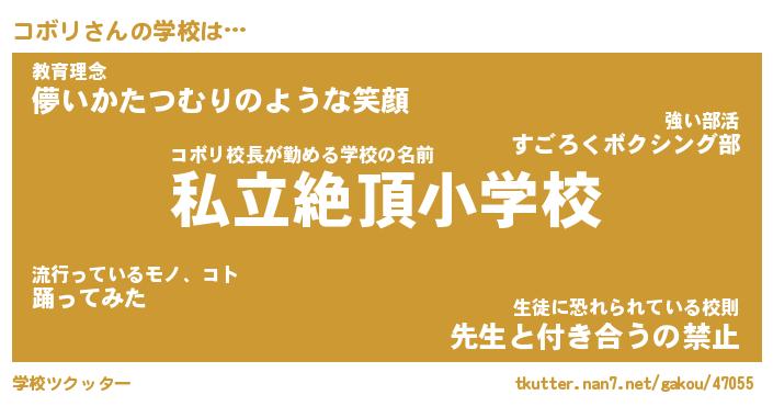 | ヒーロー風カッコイイあだ名 | 『スーパーコボリ』『ウルトラコボリマン』 |