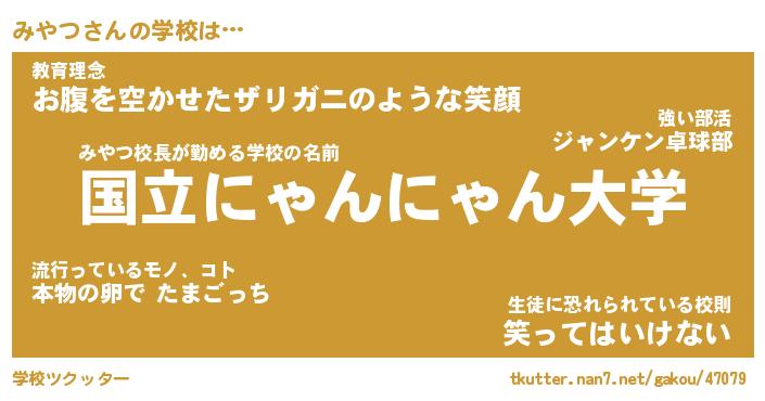 | ファンタジー風あだ名 | 『ミヤフェル』『エターナルミヤツー』 |