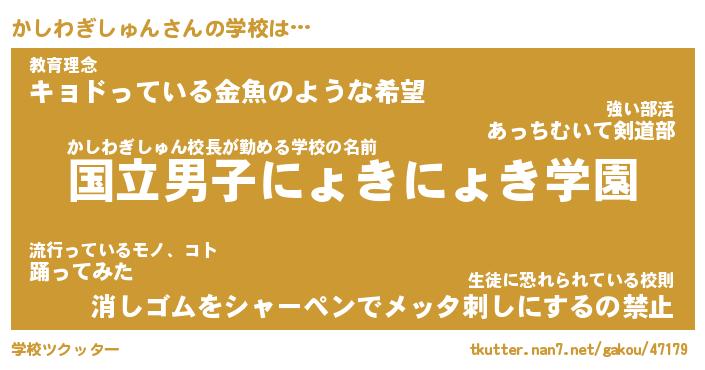 | 男性向けラノベタイトル風あだ名 | 『かしわぎしゅんの憂鬱』 |