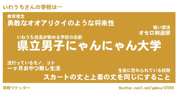 | 意味不明あだ名 | 『ペロリンいわうち』『永久保存いわうち』 |