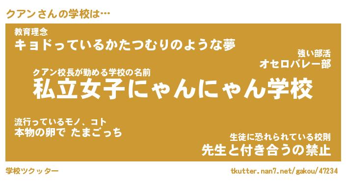 | 男性向けラノベタイトル風あだ名 | 『クアンアートオンライン』 |