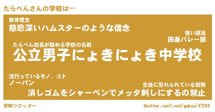 | 男性向けラノベタイトル風あだ名 | 『たらぺんの憂鬱』 |