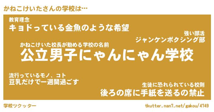 | 女子向けラノベタイトル風あだ名 | 『かねこけいた姫と円卓の騎士』 |