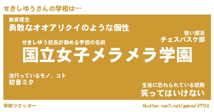 | 肩書あだ名 | 『せきしゆう社長』『せきしゆう総理大臣』 |