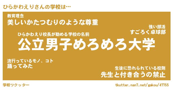 | 恥ずかしいあだ名 | 『プリティーひらかわえり』『ひらっちょ』 |