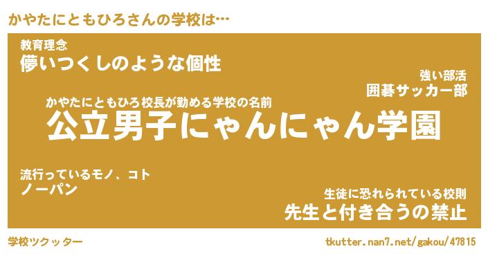 | ヒーロー風カッコイイあだ名 | 『スーパーカヤタニトモヒロ』 |