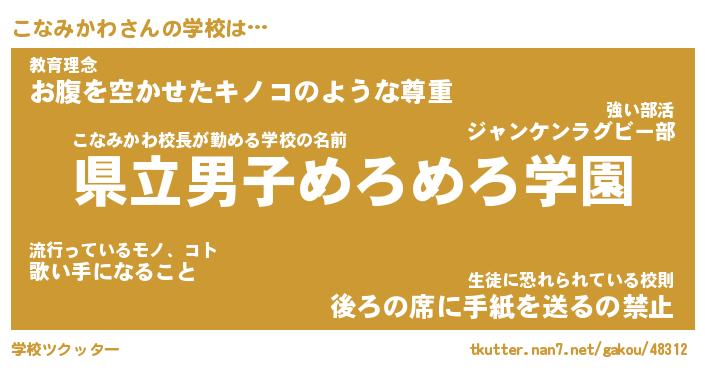 | 女子向けラノベタイトル風あだ名 | 『こなみかわ姫と円卓の騎士』 |