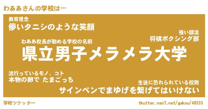 | ヘコむあだ名 | 『わあにー』『なまこ酢』『わあお』 |