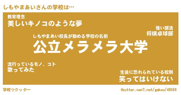 | 肩書あだ名 | 『しもやまあい社長』『しもやまあい班長』 |