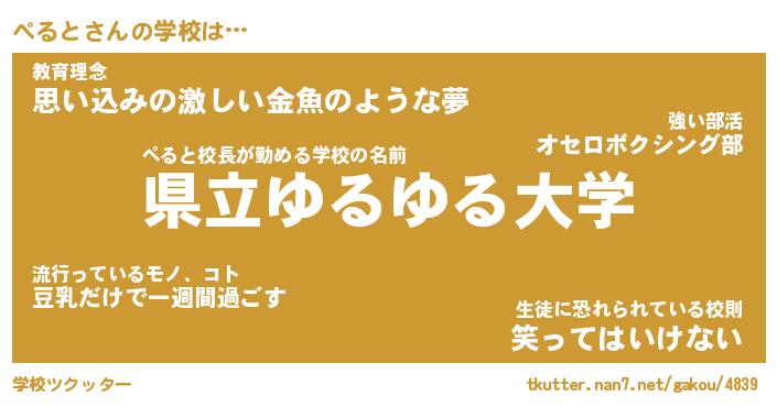 | 男性向けラノベタイトル風あだ名 | 『ぺるとの憂鬱』 |