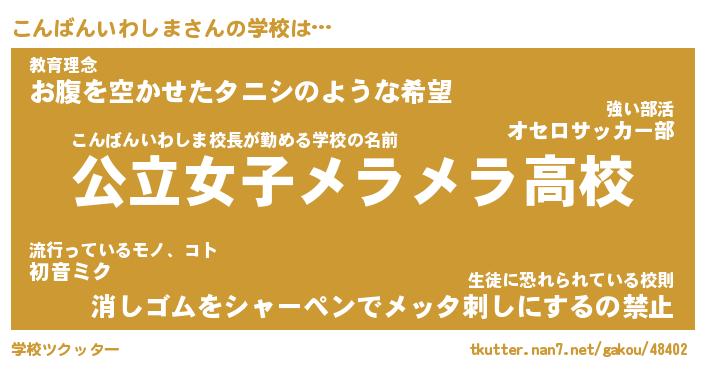 | 男性向けラノベタイトル風あだ名 | 『コンバンイワシマアートオンライン』 |