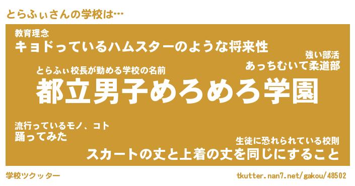 | 意味不明あだ名 | 『ペロリンとらふぃ』『永久保存とらふぃ』 |