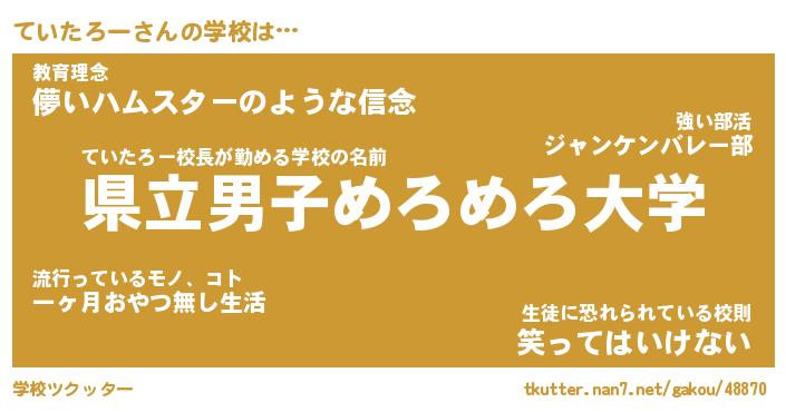 | ヒーロー風カッコイイあだ名 | 『スーパーテイタロー』『暗黒騎士テイ』 |