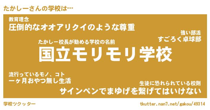 | 意味不明あだ名 | 『ペロリンたかしー』『永久保存たかしー』 |