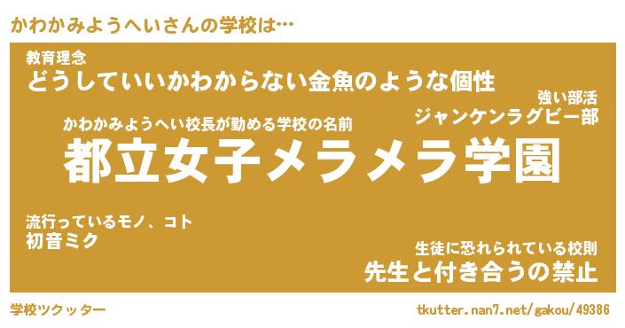 | 肩書あだ名 | 『かわかみようへい社長』 |