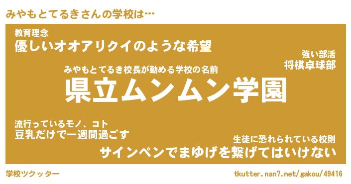 | 男性向けラノベタイトル風あだ名 | 『みやもとてるきの憂鬱』 |