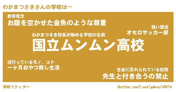 | 男性向けラノベタイトル風あだ名 | 『わかまつさきの憂鬱』 |