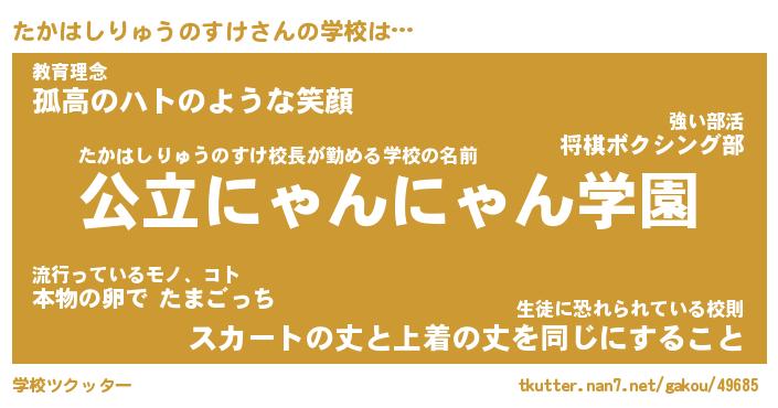 | 男性向けラノベタイトル風あだ名 | 『たかはしりゅうのすけの憂鬱』 |