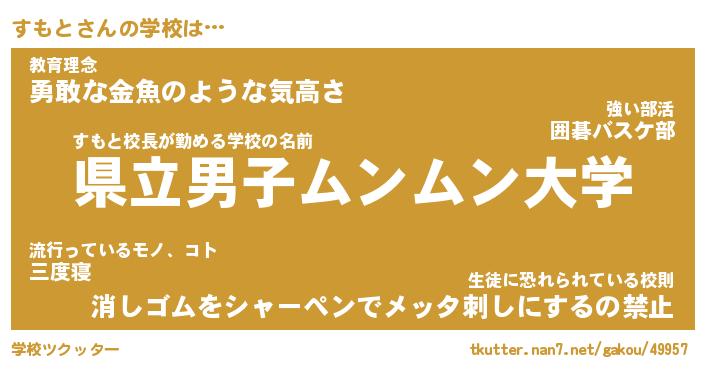 | ヒーロー風カッコイイあだ名 | 『スーパースモト』『ウルトラすもとマン』 |