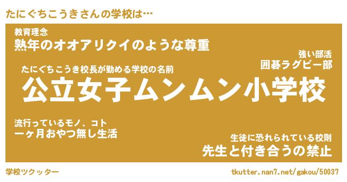 | 先生 | たにぐちこうき先生が勤める学校名『府立もふもふ中学校』 |