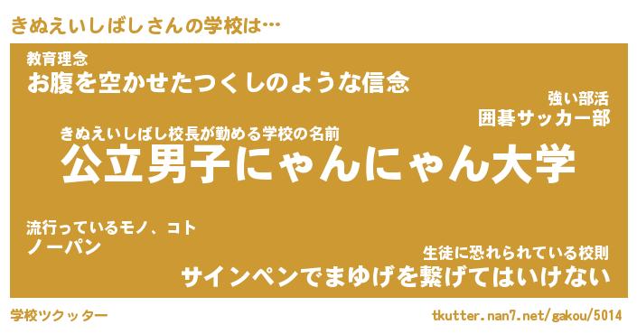 | 男性向けラノベタイトル風あだ名 | 『きぬえいしばしの憂鬱』 |