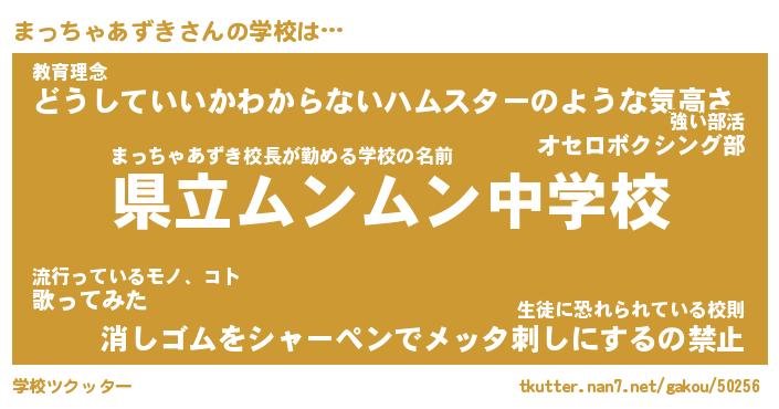 | 男性向けラノベタイトル風あだ名 | 『まっちゃあずきの憂鬱』 |