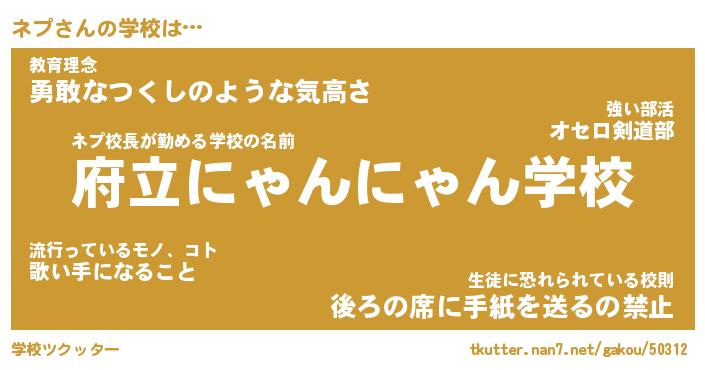| 男性向けラノベタイトル風あだ名 | 『ネプの憂鬱』『ノーゲーム・ノーネプ』 |