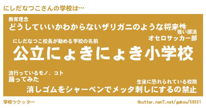 | 男性向けラノベタイトル風あだ名 | 『にしだなつこの憂鬱』 |