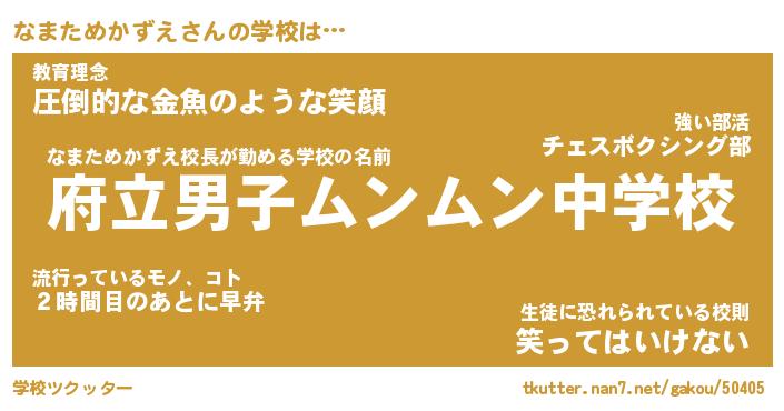 | 肩書あだ名 | 『なまためかずえ店長』 |
