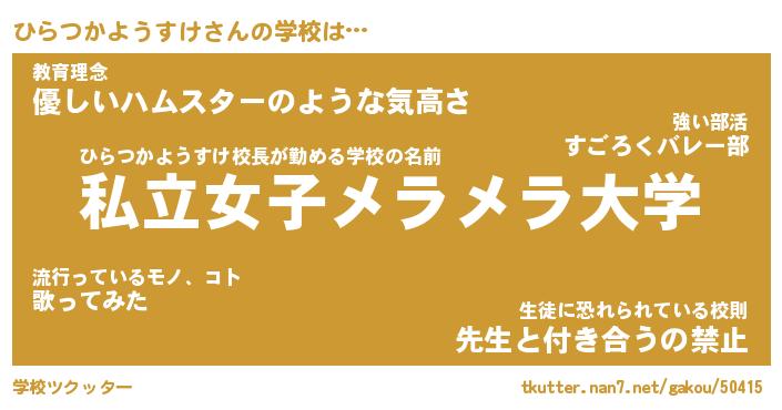 | 女子向けラノベタイトル風あだ名 | 『誰かこのひらつかようすけを説明してください! ~契約から始まるウェディング~』 |