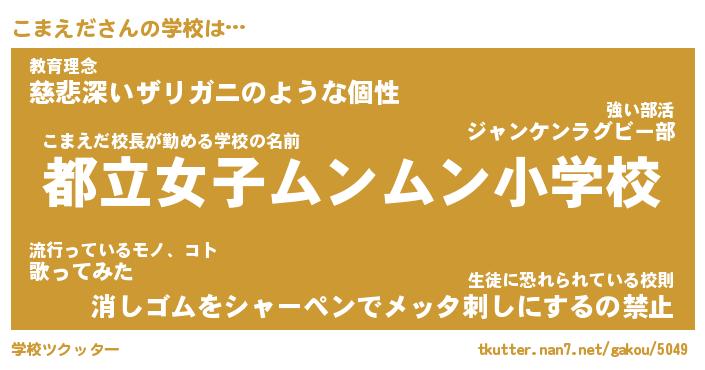 | こまえだ先生が勤める学校名『区立もふもふ中学校』 |