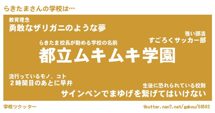 | 男性向けラノベタイトル風あだ名 | 『らきたまの憂鬱』 |
