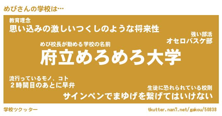 | 伝説のあだ名 | 『伝説のスナイパーめび』 |