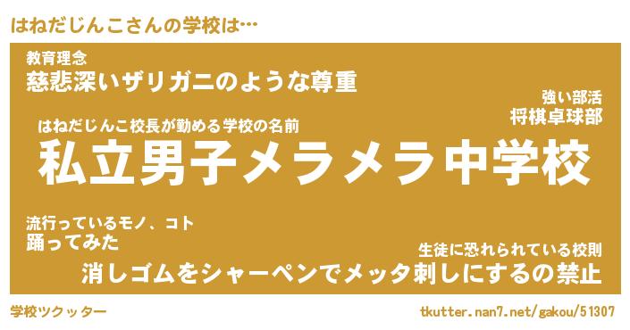 | 男性向けラノベタイトル風あだ名 | 『はねだじんこの憂鬱』 |
