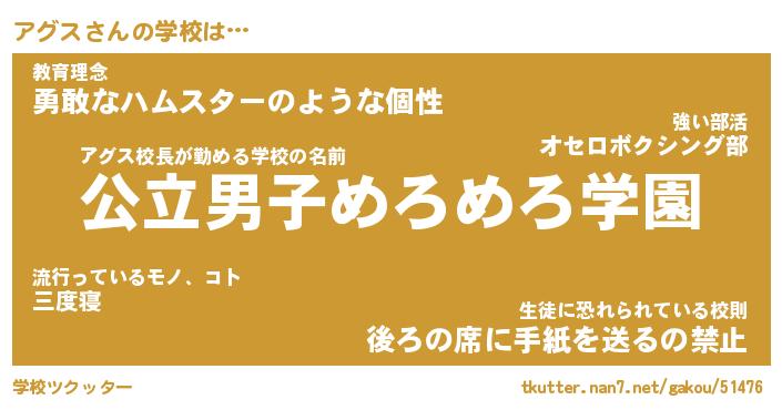 | 男性向けラノベタイトル風あだ名 | 『アグスの憂鬱』 |