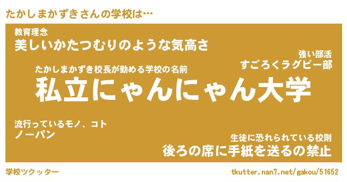 | 男性向けラノベタイトル風あだ名 | 『たかしまかずきの憂鬱』 |