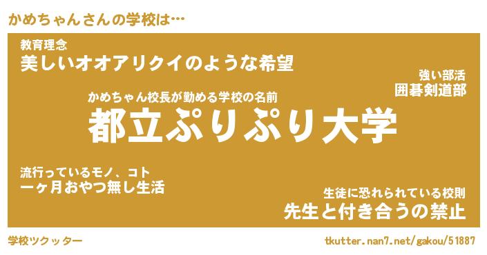 | ファンタジー風あだ名 | 『カメフェル』『エターナルカメチャンー』 |