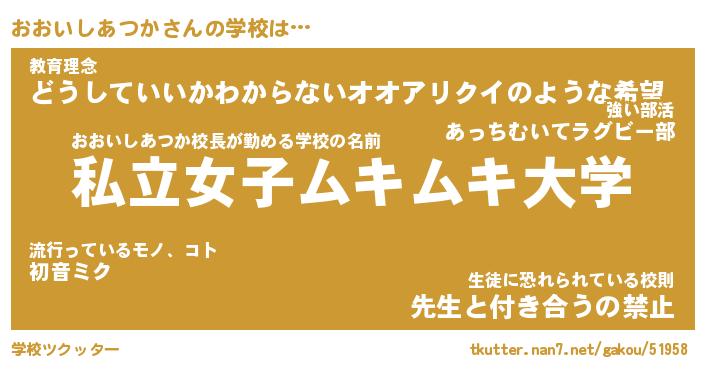 | 胡散臭い通販商品みたいなあだ名 | 『億万長者になれるブレスレット…その名も「おおいしあつか」』 |