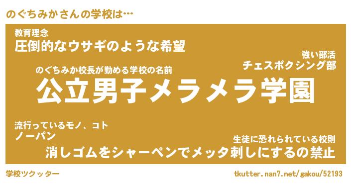 | 男性向けラノベタイトル風あだ名 | 『のぐちみかの憂鬱』 |
