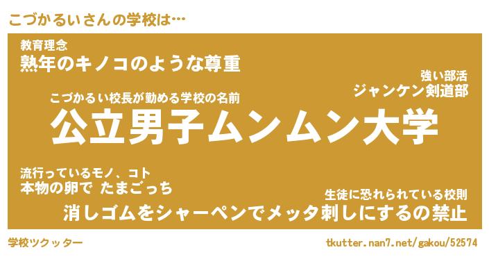 | ヘコむあだ名 | 『こづにゅー』『つくし』『こづ太郎』 |