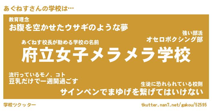 | 意味不明あだ名 | 『ペロリンあぐねす』『永久保存あぐねす』 |