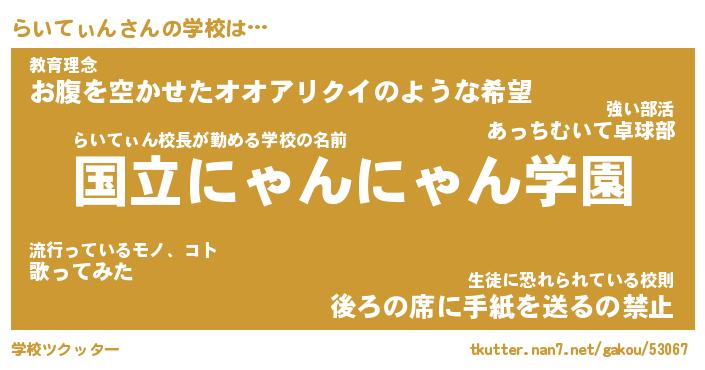 | 男性向けラノベタイトル風あだ名 | 『らいてぃんの憂鬱』 |