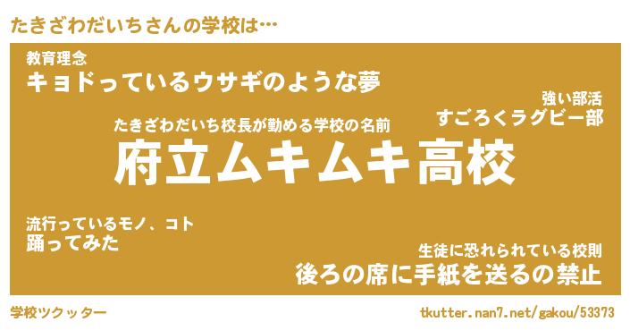 | 男性向けラノベタイトル風あだ名 | 『たきざわだいちの憂鬱』 |