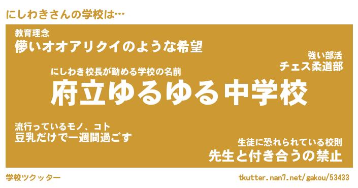 | 肩書あだ名 | 『にしわき御曹司』『にしわき大統領』 |