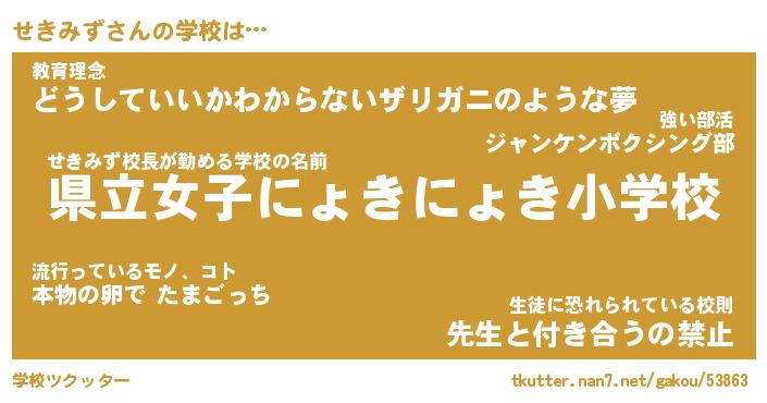 | 意味不明あだ名 | 『ペロリンせきみず』『永久保存せきみず』 |