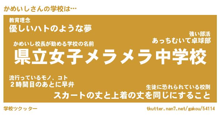 | ヘコむあだ名 | 『かめにー』『なまこ酢』『かめお』 |