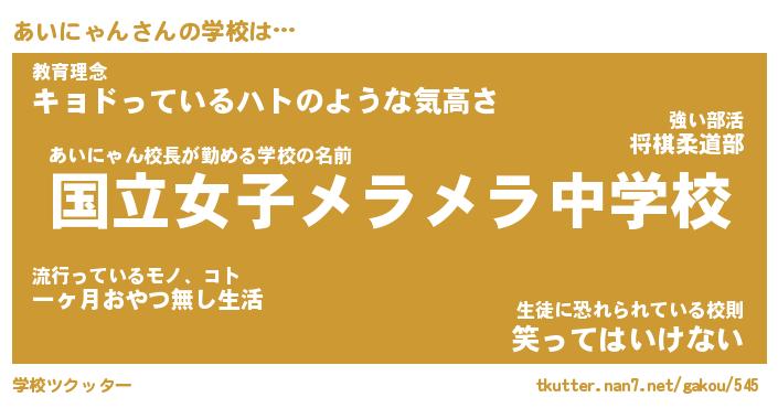 | 先生 | あいにゃん先生が勤める学校名『町立猫耳中学校』 |